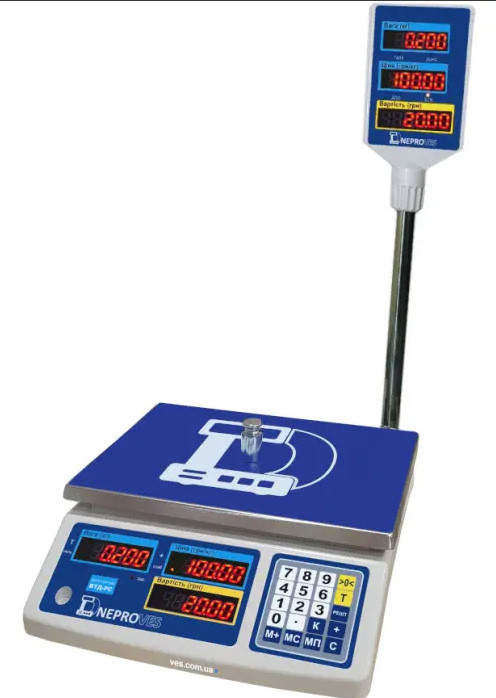 ✅ Торгові ваги з індикатором покупця — точне зважування товарів із миттєвим розрахунком вартості. Покупець бачить всю інформацію: масу, ціну за кілограм та підсумкову вартість.